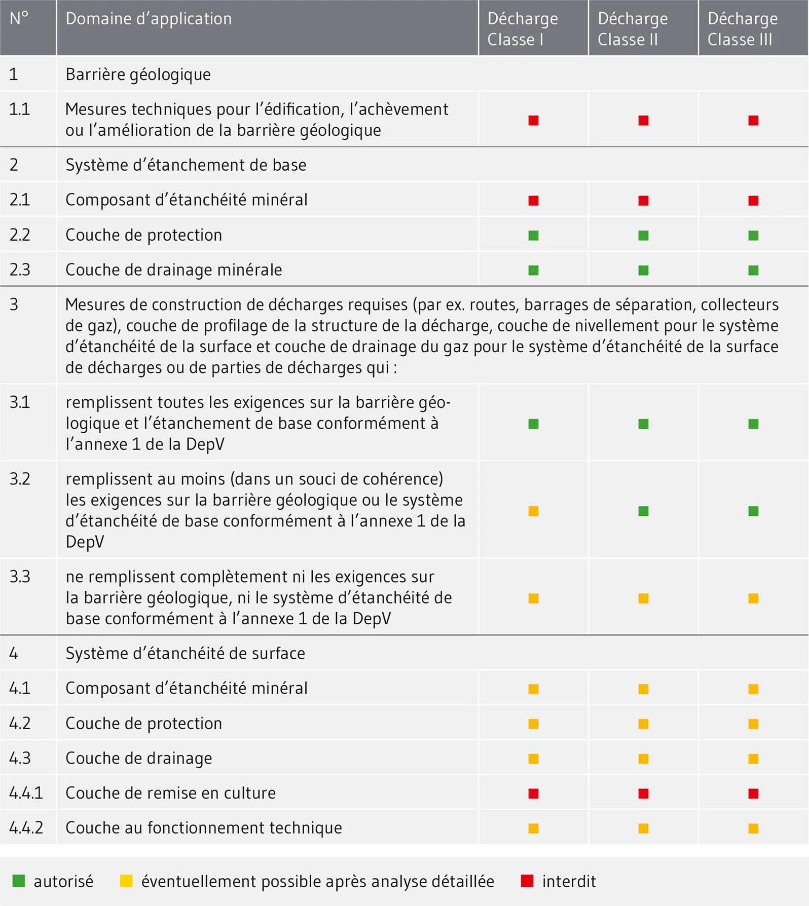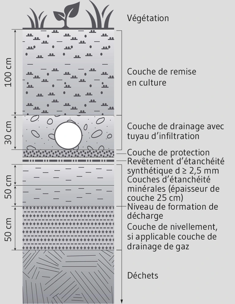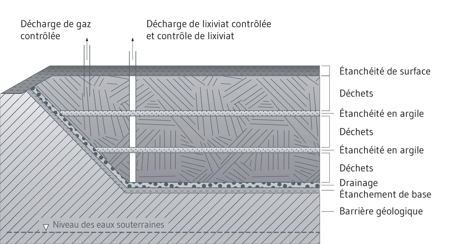 La directive sur la mise en décharge réglemente, en autres, les exigences suivantes :